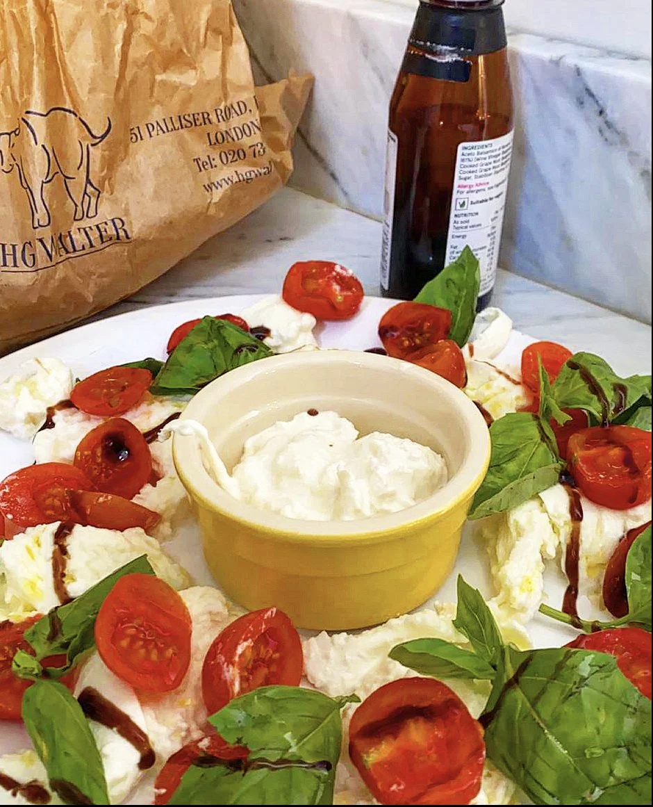 Brown butter roasted beetroot & sweet potato with rosemary, garlic, whipped basil goat cheese & walnuts